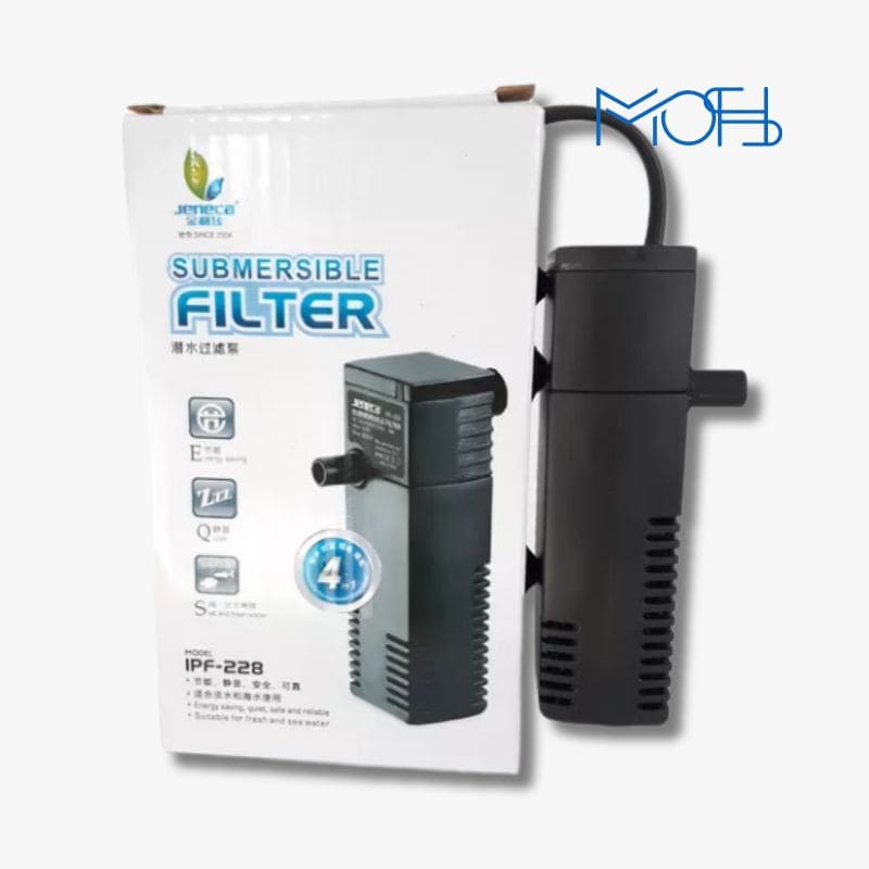 El filtro sumergible con flauta cascada Jeneca 4W, 220L/h (modelo IPF-228) es una excelente opción para mantener el agua de tu acuario limpia y saludable. Este filtro compacto y eficiente está diseñado para acuarios pequeños de 10 a 30 litros, proporcionando una filtración de 220 litros por hora, lo que asegura que el agua se mantenga clara y libre de impurezas.