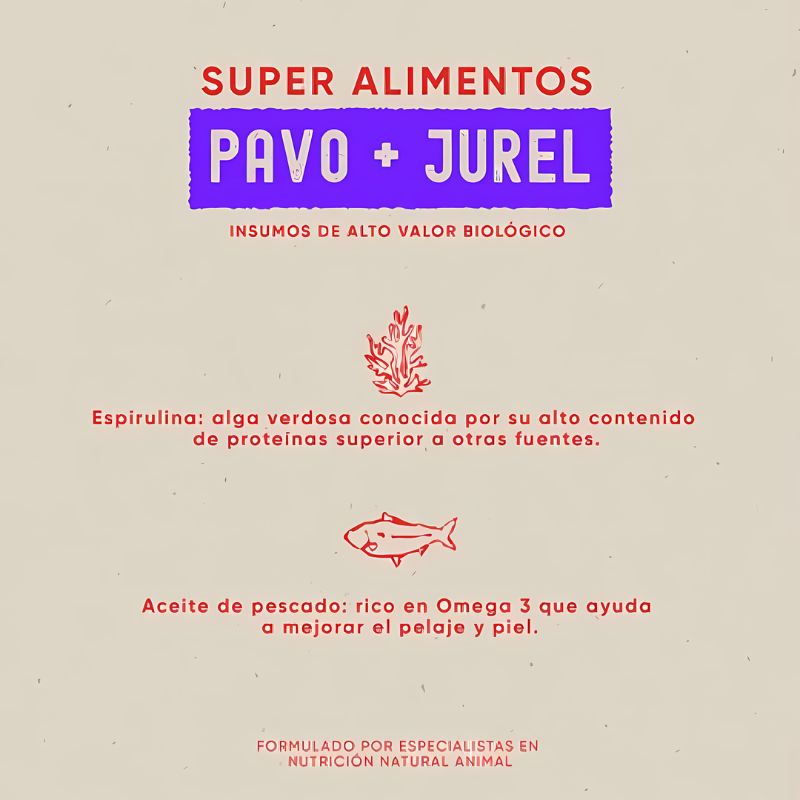 ✔ Proteínas de alta calidad provenientes de pavo y jurel.